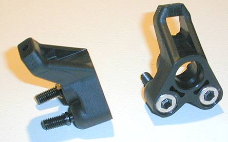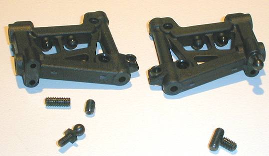 | Installing droop and bump stop screws on the rear arms. Mounted the hubs on the arms. |