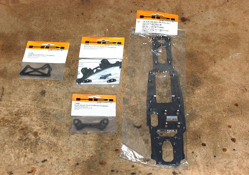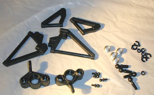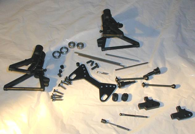 | Front arms, knuckles, shock tower, CVDs, and stabilizer. |