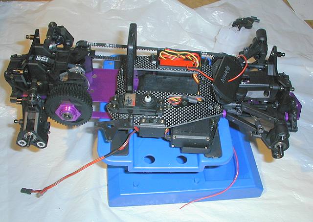 | I am using a Hitech HIS-03MK 3-channel FM receiver with built-in failsafe. Also using a Hitec HS-635HB High Torque/High Speed servo for steering and a HS-322HD servo for throttle/brake. The battery switch has a charge port. |