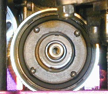 Installed spacer, flywheel, weights, springs, clutch shoe, and adjustment collar.